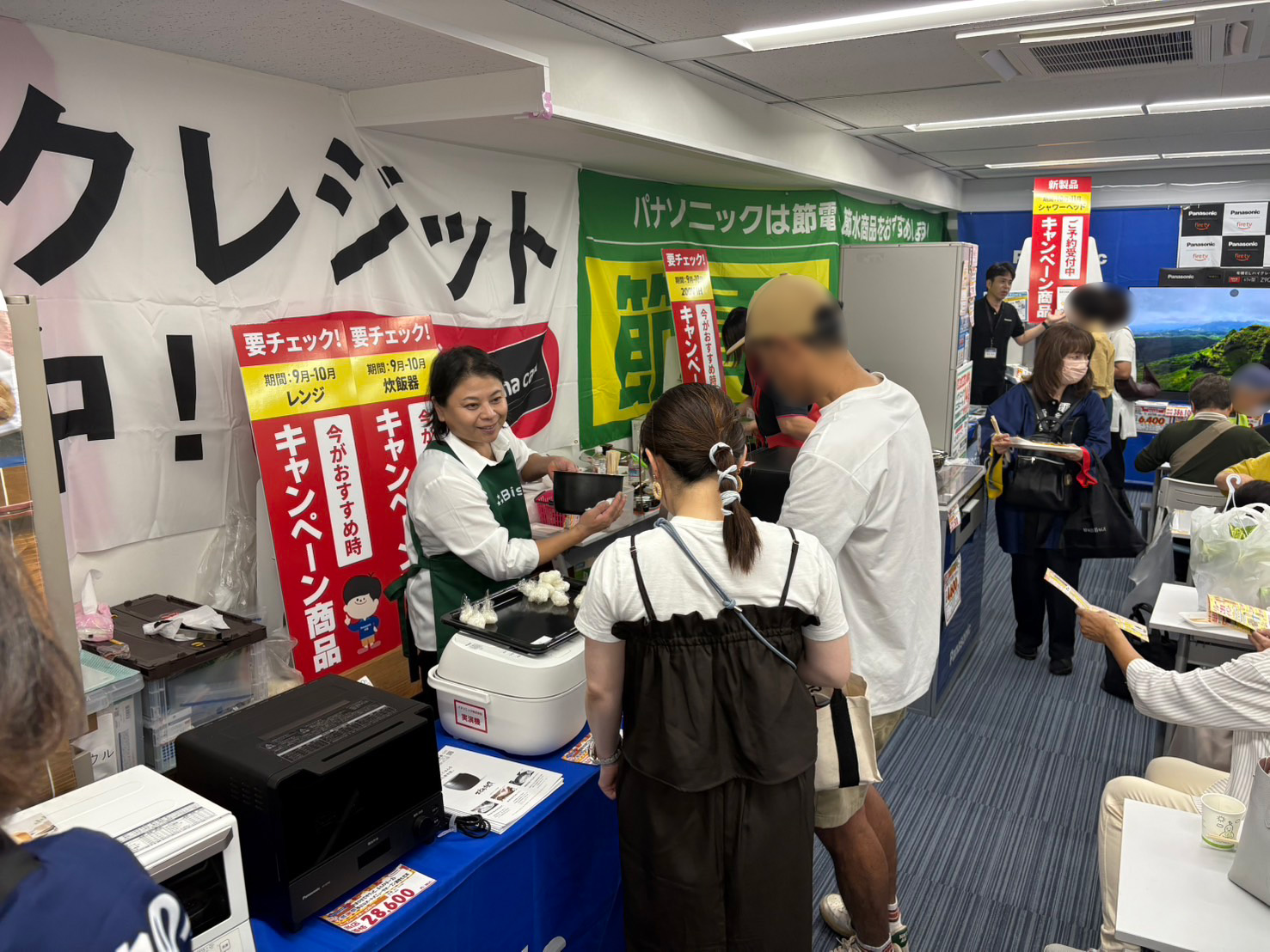 試食ブースでは、話題の炊飯器で新米と備蓄米の食べ比べをしていただきました。